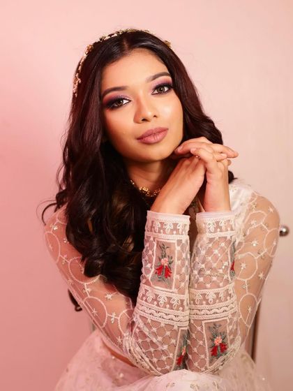Let's turn up the glamour for your Sangeet and Cocktail nights. This gallery is all about fun, vibrant, and statement-making looks. From bold, smoky eyes and shimmering lids to creative hairstyles, we design durable and dazzling makeovers that ensure you are the star of the party and can dance the night away.