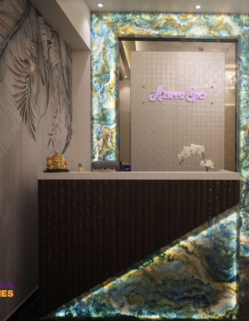 We specialize in creating tranquil environments that feel like a true escape. Our designs focus on sensory details, using natural textures, custom backlit features like reception desks, and soft, layered lighting to build a serene atmosphere that your guests will love.