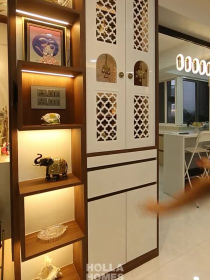 For homes with dedicated space, I design everything from grand pooja rooms with statement doors to serene, traditionally crafted niches. I focus on creating a tranquil atmosphere using custom lighting, stone cladding, and intricate CNC jali work.
