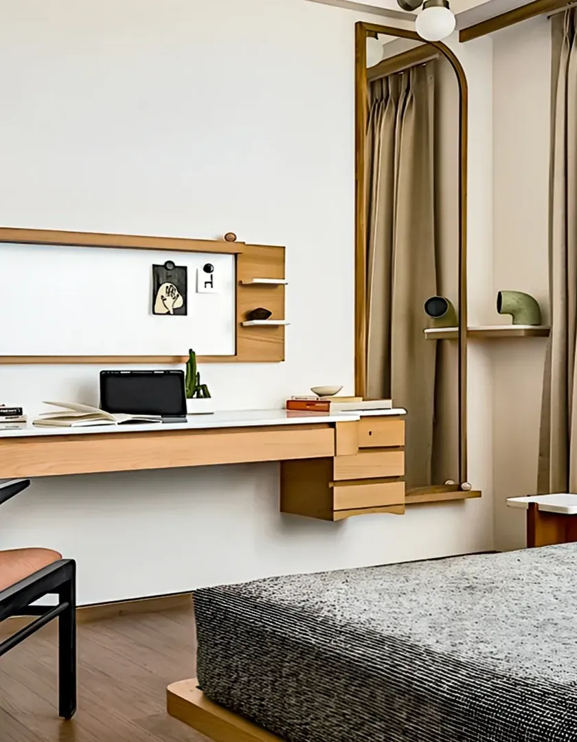 We seamlessly integrate functional workspaces into your bedroom design. Whether you need a compact study nook, a dual-person work-from-home setup, or a dedicated desk with ample storage, we build it right in.