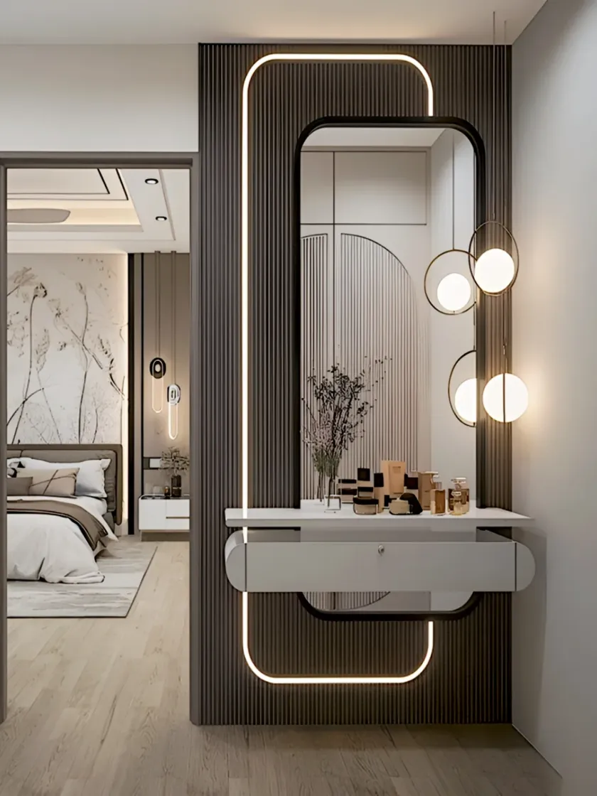 We design beautiful and practical vanity areas with perfect lighting and smart storage. From compact dressing tables to elaborate setups integrated with your wardrobe, we create the ideal spot for you to get ready.
