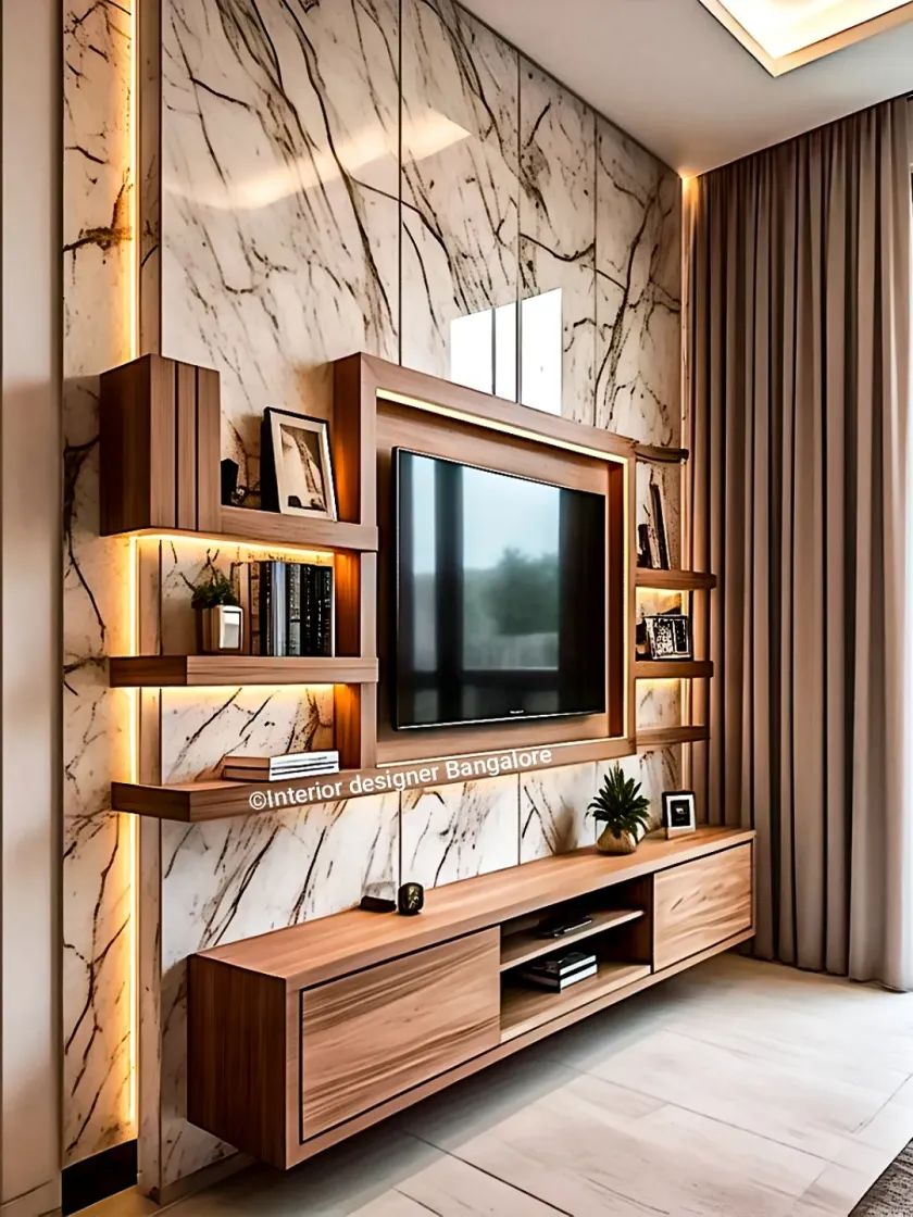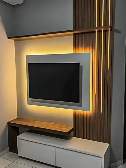 I create living spaces that are both stylish and practical, centered around modern entertainment units. My designs feature clean lines, a mix of materials like wood and marble, and clever use of ambient lighting to hide clutter and display your favorite things.