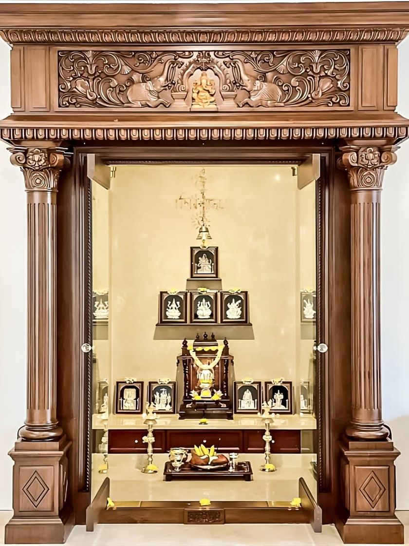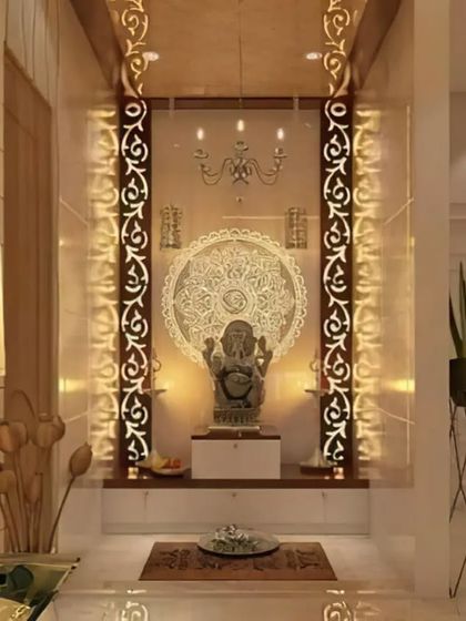 I design pooja rooms that are both modern and deeply respectful of tradition. I use materials like wood, marble, and intricate jaali work, along with thoughtful lighting, to create a serene and divine atmosphere for prayer and meditation.