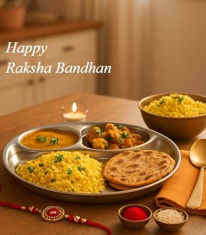 - Balanced thali - usually some sabzi/dal, rice or khichdi, and rotis/parathas.