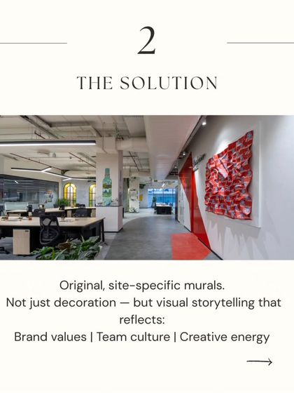 An office should be more than just a place to work; it should be a space that inspires creativity and reflects your brand's identity. I specialize in turning corporate environments, from boardrooms and reception areas to cafeterias and hallways, into dynamic visual experiences. We've collaborated with leading companies like Microsoft, AB InBev, and Puma to create large-scale murals and art strategies that build culture and tell a compelling brand story.
