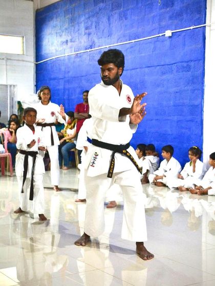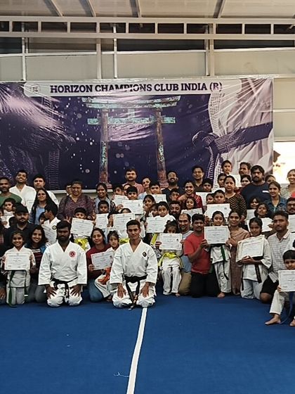 Osu! I’m Tharun S. Acharya, started Horizon Champions Club in 2018. Karate runs in my blood, you’ll see my son Lakshan kicking around in his gi. Our motto? Defending Dreams. For me, every student is not just a fighter, but someone trusted by their parents to be safe, strong. That’s a big responsibility. We respect tradition here – recently got a Maha Guru Bodhidharma painting for our dojo. Karate is more than medals, it’s about discipline and building a champion mindset.