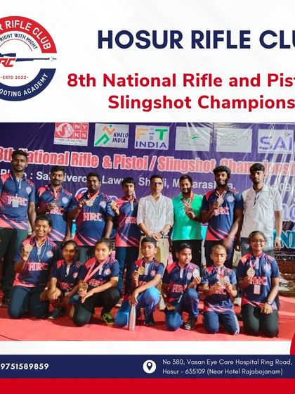 Hey, we’re Hosur Rifle Club – yup, the first shooting academy in Hosur. Started by Dr. Somasundaram, who’s a doctor but even more obsessed with helping local shooters make it big. You’ll spot him here, chatting with students, giving diet tips, never too busy for us. Our trainers, like Nithishkumar, are always around. We call ourselves Hosurians, and trust me, nothing beats seeing our folks win those gold medals. We’re here to help you shoot for greatness.