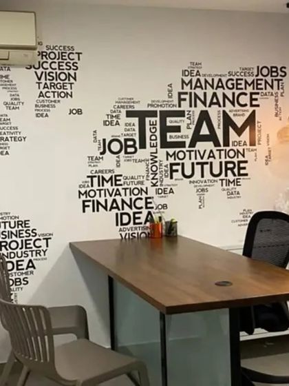 - Custom office wall murals that tie in your logo, brand colors, or even your team's favourite quotes