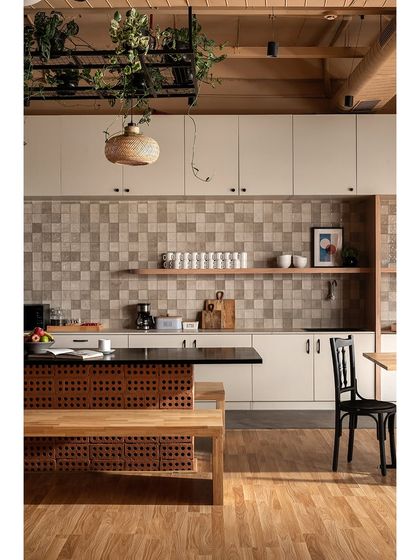 - Industrial Aesthetics: Use of raw hollow terracotta bricks, wire mesh accents, and exposed concrete finishes.