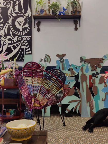 Art on any surface - We create chaotic wall murals, sculptures, installations, mosaics, metalwork, and hand-painted furniture art.