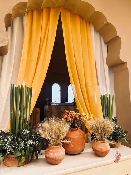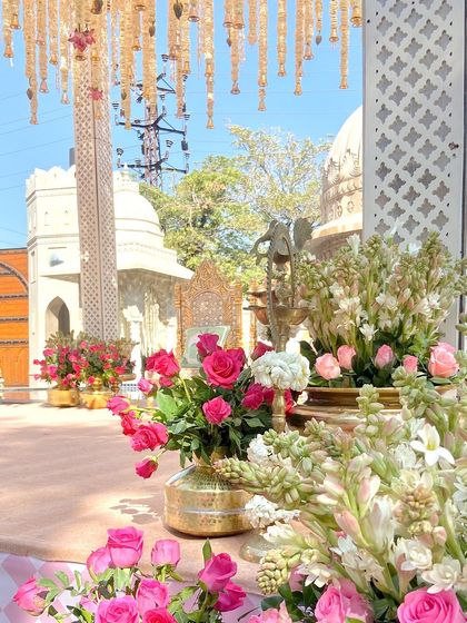 We specialize in creating immersive traditional ceremony setups that blend cultural richness with modern aesthetics. Our expertise includes intricate floral arrangements using marigolds, Rajnigandha, and mogras, complemented by traditional elements like terracotta items and block prints.