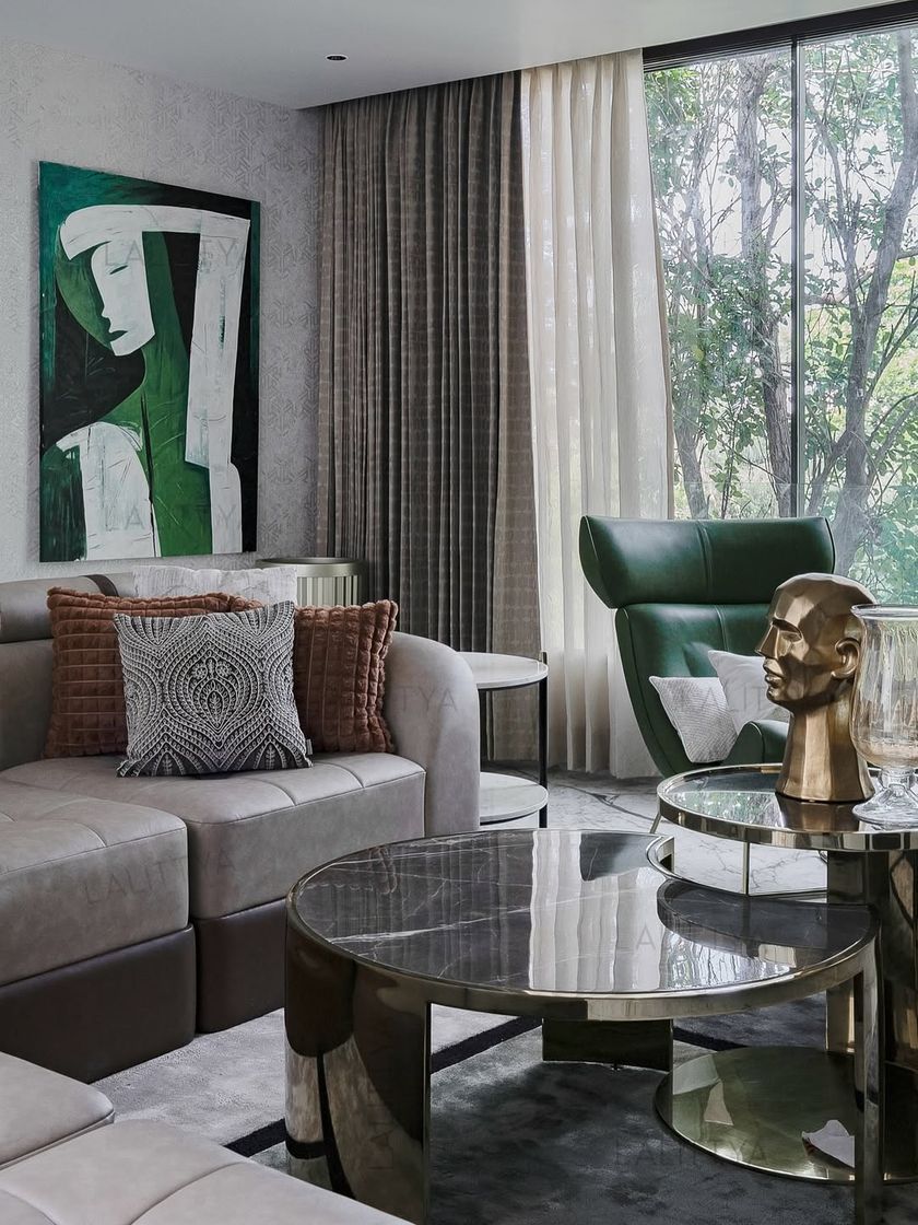 We specialize in creating living areas with a sense of scale and drama, often using double-height ceilings and expansive windows to bring in natural light. These spaces are designed for both impressive entertaining and comfortable family life, featuring custom furniture, statement lighting, and a rich palette of materials.