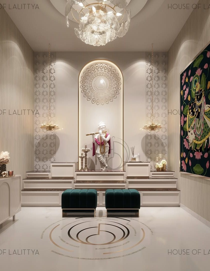 We design mandirs and pooja rooms that are serene sanctuaries within the home. Blending traditional devotion with modern aesthetics, we use materials like hand-carved marble, onyx, and mother-of-pearl inlay to create spaces that are peaceful, personal, and spiritually uplifting.
