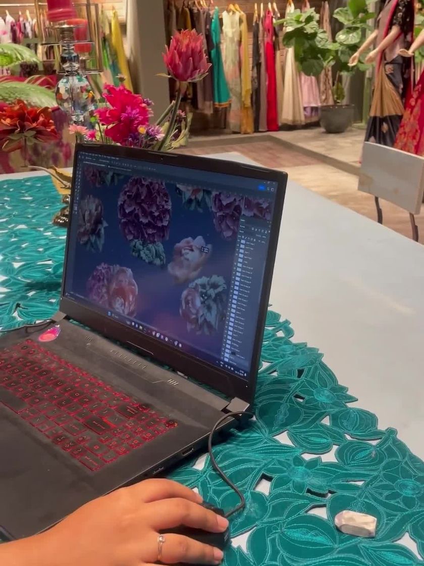 Every creation begins with a conversation and a sketch, evolving through the hands of my skilled artisans. This is a glimpse into the meticulous process, from selecting Pantone shades and hand-tracing patterns to the delicate art of hand embroidery and the final precise cut of the fabric.