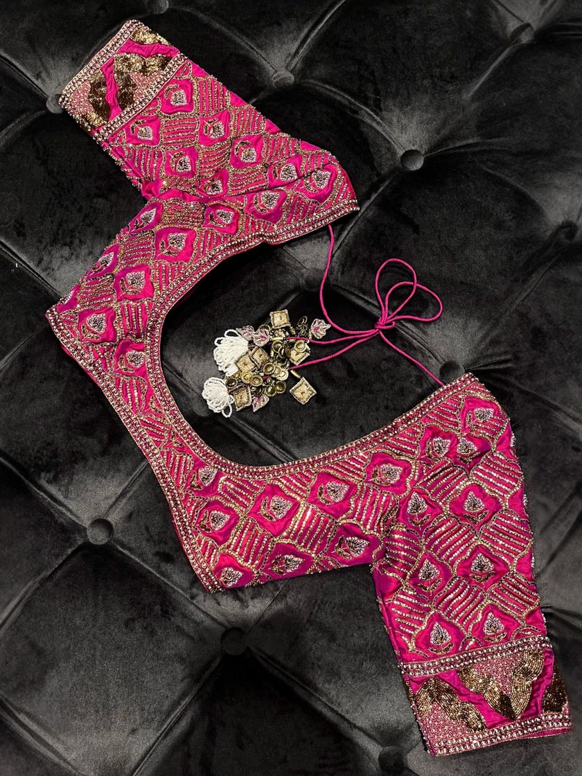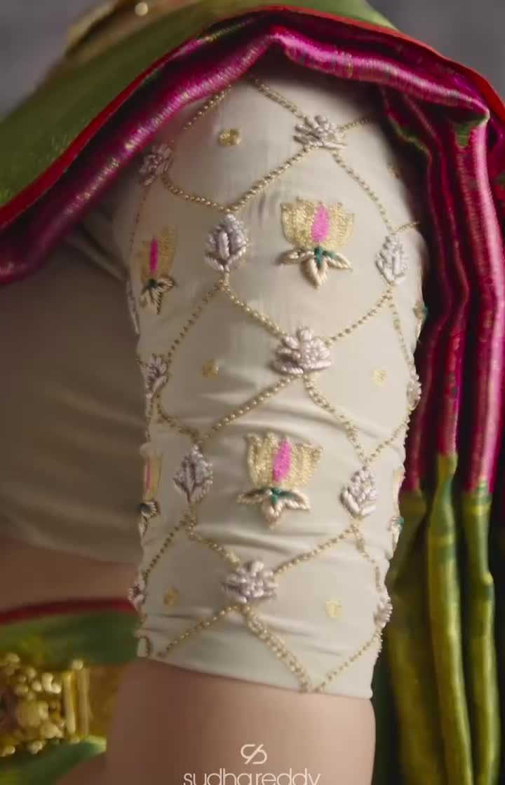 I create bespoke blouses that transform any saree or lehenga into a couture statement. Featuring my signature nature-inspired embroidery, I use everything from delicate zardosi and cutdana to Swarovski crystals and French lace. Each blouse is a unique piece of art, meticulously crafted by my artisans to be the centerpiece of your ensemble.