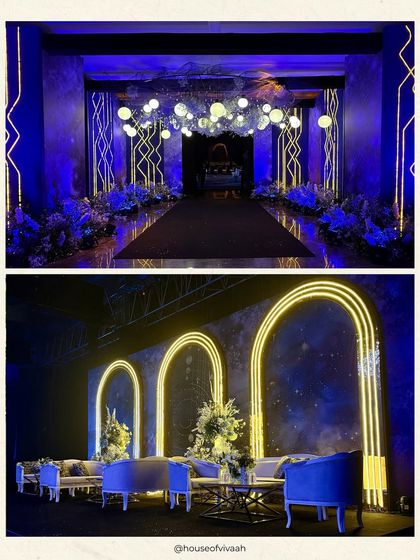 We design Sangeet and Cocktail nights to be immersive sensory experiences, where the energy is palpable. Our expertise lies in using dramatic lighting, large-scale structural installations, and unique thematic elements to transform any venue into a high-energy party atmosphere, from enchanted forests to futuristic celestial scapes.