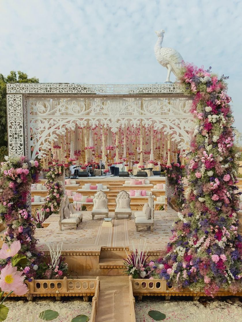 The mandap is the heart of a wedding, a space where stories and souls unite. We design these sacred spaces to be deeply personal and architecturally stunning, blending heritage motifs like temple bells and jaali work with contemporary floral artistry, from floating garden concepts to grand palace backdrops.