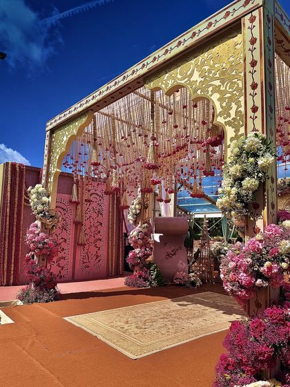 The mandap is the heart of a wedding, a space where stories and souls unite. We design these sacred spaces to be deeply personal and architecturally stunning, blending heritage motifs like temple bells and jaali work with contemporary floral artistry, from floating garden concepts to grand palace backdrops.