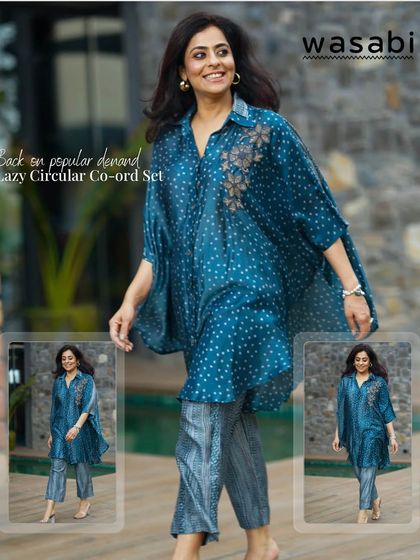 My co-ord sets are the answer to modern, effortless dressing. I design them using fluid, breathable fabrics like pure crepe, cotton silk, and linen, ensuring they feel like a second skin. This collection features our signature anti-fit shirts, versatile pants, and unique, art-inspired prints with delicate hand-embroidery.