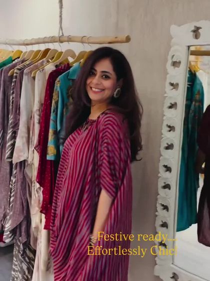 For moments when you want to look festive but keep it super easy, I design breezy kaftans, dresses, and co-ord sets. These pieces are all about fluid, draped silhouettes in unique prints and breathable fabrics, finished with special details like hand embroidery.