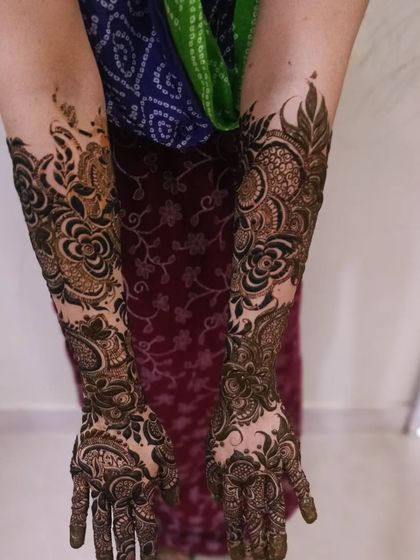 I specialize in classic mehendi patterns rich in cultural significance, focusing on traditional motifs like peacocks, paisleys, and intricate floral designs. My traditional mehendi service is primarily applied on hands and feet, perfect for various traditional ceremonies and events.