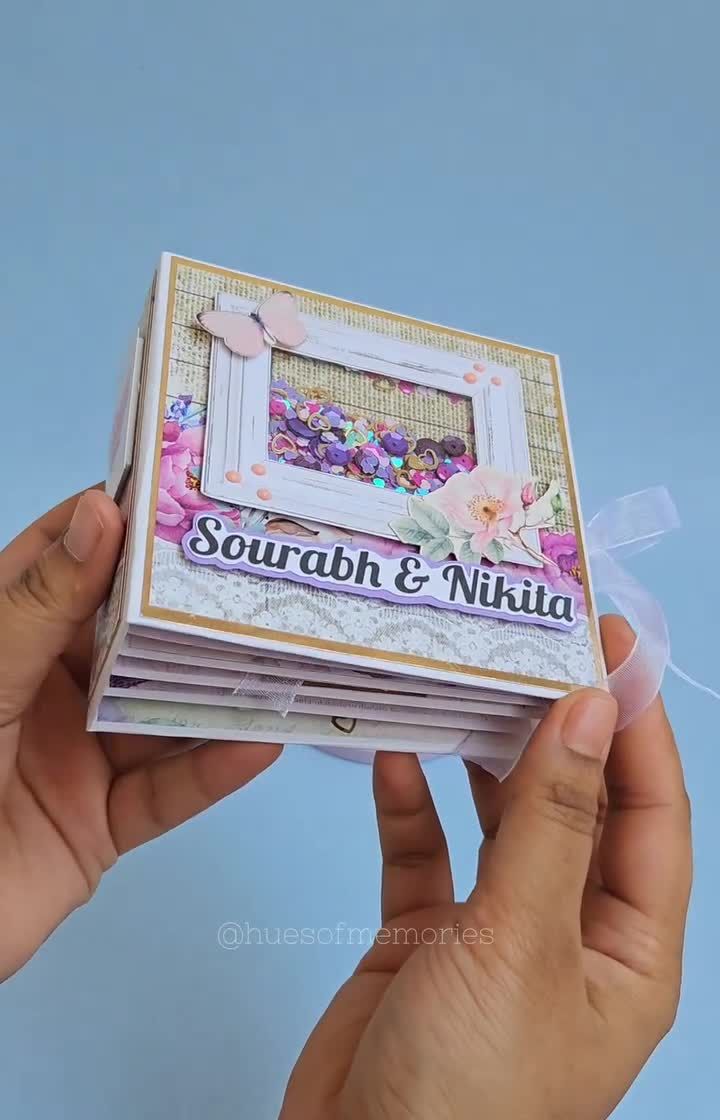 I create keepsake albums that tell your story. Each one is designed from scratch for occasions like anniversaries, birthdays, or a baby's first year, with interactive elements to hold your precious photos and messages.