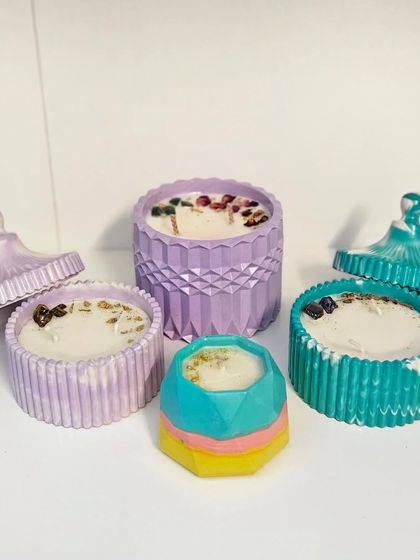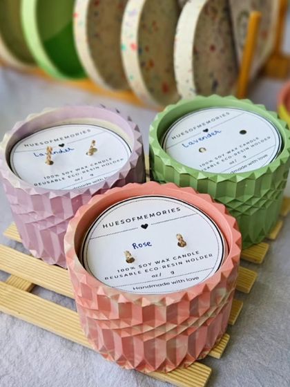 Each candle and wax product comes straight from my hands - right from pouring the wax to making every jar. I use 100% natural soy wax, and my vessels are handcrafted from eco-friendly resin. Jo bhi cheez banati hoon, wo pyaar aur mehnat se banti hai (Everything I make is with love and hard work).