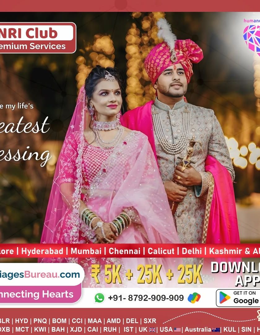 I offer a specialized, confidential marriage service for Non-Resident Indians in the USA, UK, UAE, Canada, Australia, and beyond. I understand the unique needs of Indians living abroad and personally curate matches who share your cultural values and global perspective.