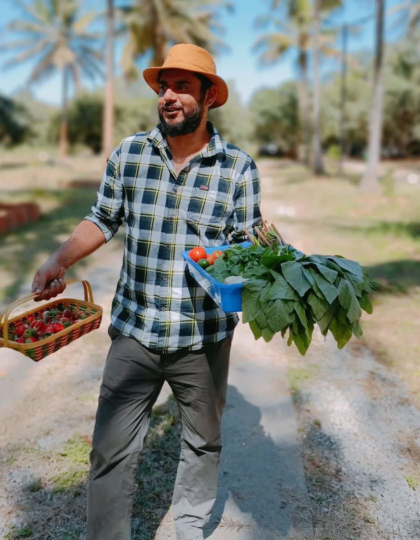 This is a look at our daily harvest, ready to be delivered to restaurants, cafes, and chefs across Bangalore. We offer a diverse range of produce, from beans and okra to assorted greens and vegetables, all picked fresh.