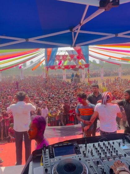 I play high-energy EDM and mashup sets for big crowds at college fests and festivals, hype up the audience on the mic, and handle all the tech for large concert setups.