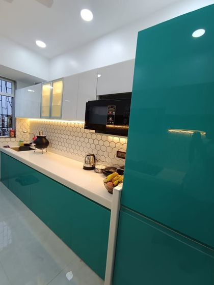 Explore our collection of kitchens designed with bold and refreshing color palettes. These spaces feature high-gloss acrylics, smart layouts, and premium hardware for a sleek, contemporary look.