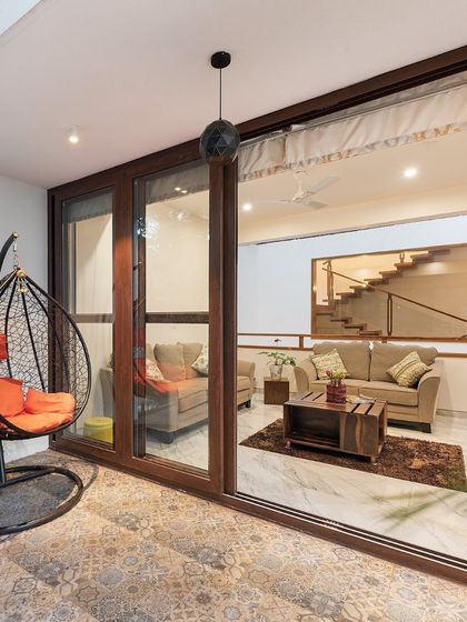 We design interiors that use natural light, custom materials, and client input to create practical spaces with features like courtyards, unique staircases, and pet-friendly layouts.