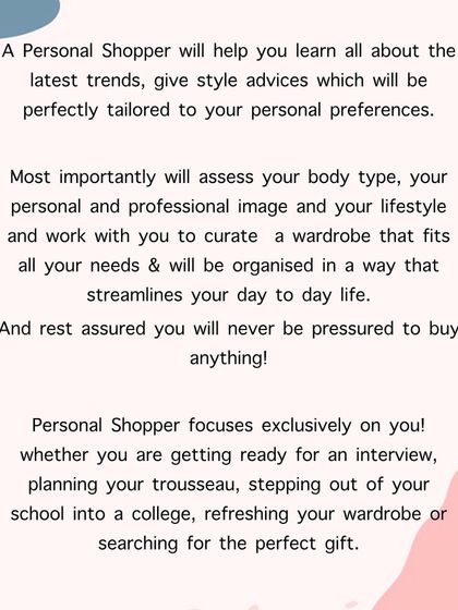 As a personal shopper and style consultant, I offer expert guidance for weddings, wardrobes, and gifting. My goal is to understand your unique aesthetic and help you make confident choices, without any sales pressure.