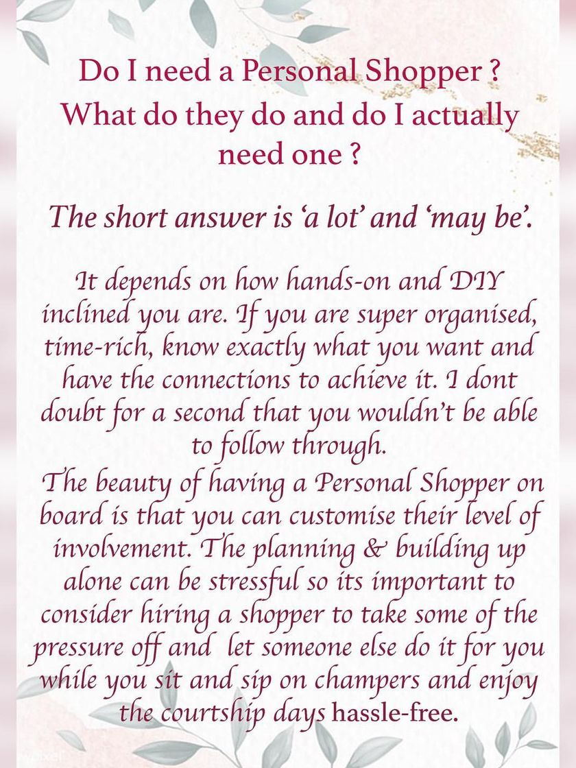 This section answers your key questions about what a personal shopper does and how my service can be tailored to you. Understand the value of having an expert guide you through style choices, wardrobe organization, and more, saving you time and effort.