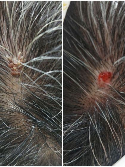 Warts, especially on the scalp, require careful and thorough removal to prevent them from spreading or recurring. This section shows our expertise in treating warts in sensitive or difficult-to-reach areas.