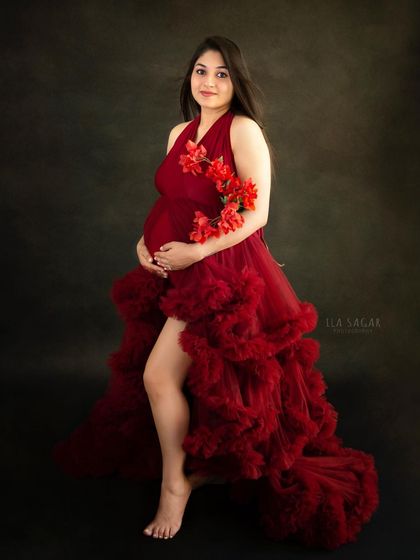 Sessions include professional props, multiple outfit changes, and carefully designed setups to create memorable portraits that highlight your pregnancy glow.