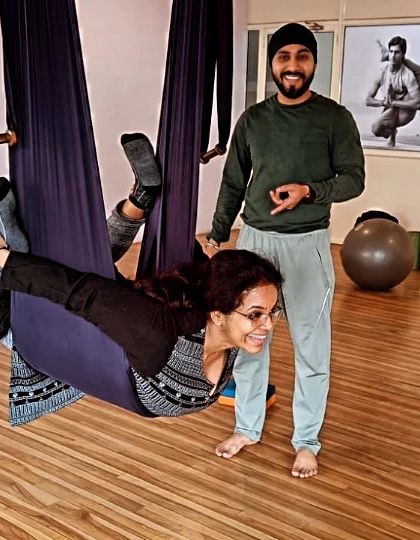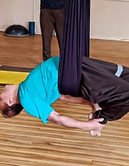 I teach practical yoga classes like aerial, acro, and chair yoga where I guide you with props and hands-on support, making each session fit your body and level.