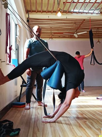 I’m your guide, not just an instructor. My hands-on style means I’ll help you with alignment and support, making sure you’re safe but also challenged. We use props like hammocks, chairs, and blocks—whatever helps you get the most out of your practice. Udaasiyon ki vajah to bahut hai zindagi mein, par bevajah khush rehne ka maja kuch aur hai (There are so many reasons to be sad, but being happy for no reason? That’s something special). Let's find that joy together, one stretch at a time.
