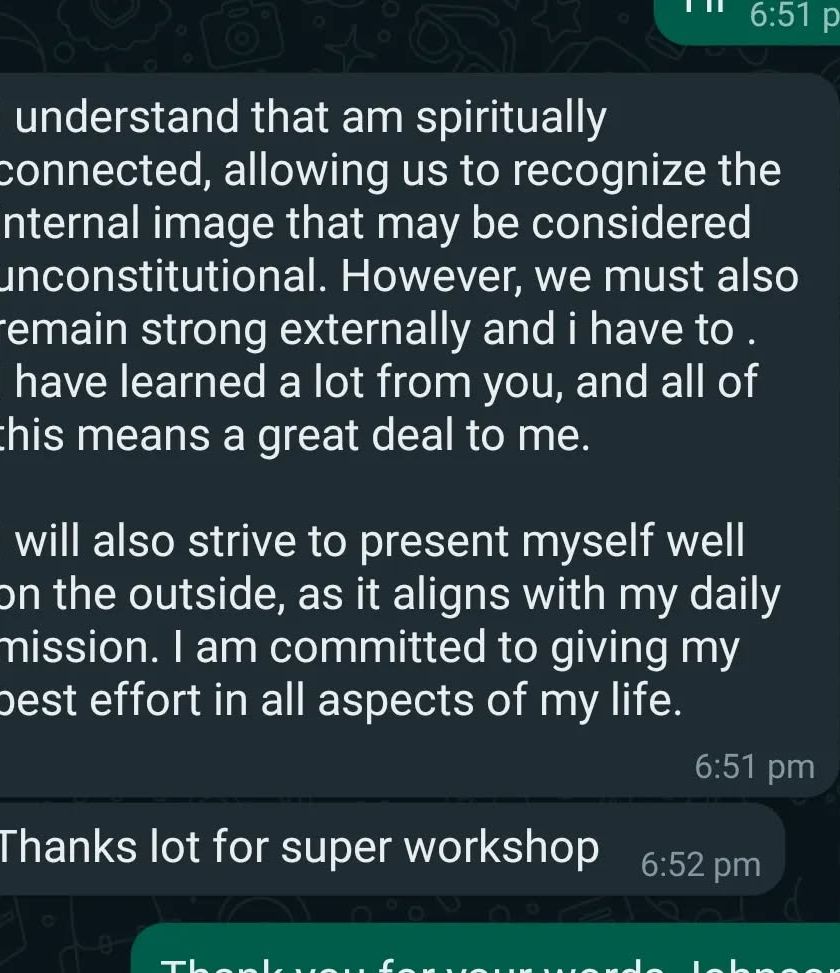 I provide workshops for teachers and academic staff, focusing on enhancing classroom presence, communication, and handling real-time challenges. My goal is to empower educators with the confidence and skills to create a more impactful learning environment.