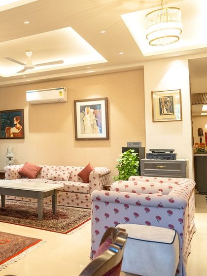 Explore a single, cohesive project from start to finish. This New Delhi residence showcases our ability to blend classic charm with contemporary comfort, creating a warm and sophisticated home filled with curated furniture, rich textures, and personal details.