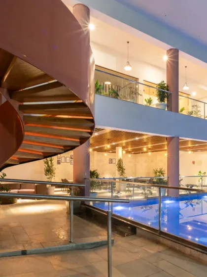 In urban settings, I design clubhouses and leisure centers to be vibrant hubs of social energy. Bold architectural features, like the terracotta spiral staircase at Sona Vistaas, are used to create dynamic spaces that draw people together.