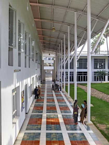 I try to make campuses that do more than teach - they connect. You’ll see open walkways, shaded steps, and green terraces. It’s not just about classrooms. We like mixing formal and informal zones, so staircases double up as hangout spots and gardens are there for a breather. Climate-responsive building design is a big deal for us - we use traditional jalis and deep-set windows to keep things cool, especially in the sultry weather.