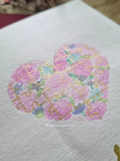 Here is a little peek into my creative world. Every piece begins with an idea and simple tools, and is built layer by layer, whether it's a watercolor wash, a line of calligraphy, or a touch of gold. This is where the magic happens.