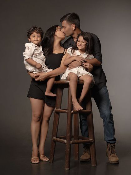 My all-white studio setup is a blank canvas for your family's connection to shine. The clean, bright, and airy feel creates timeless portraits that are both modern and full of light. This style is perfect for focusing purely on expressions and emotions.