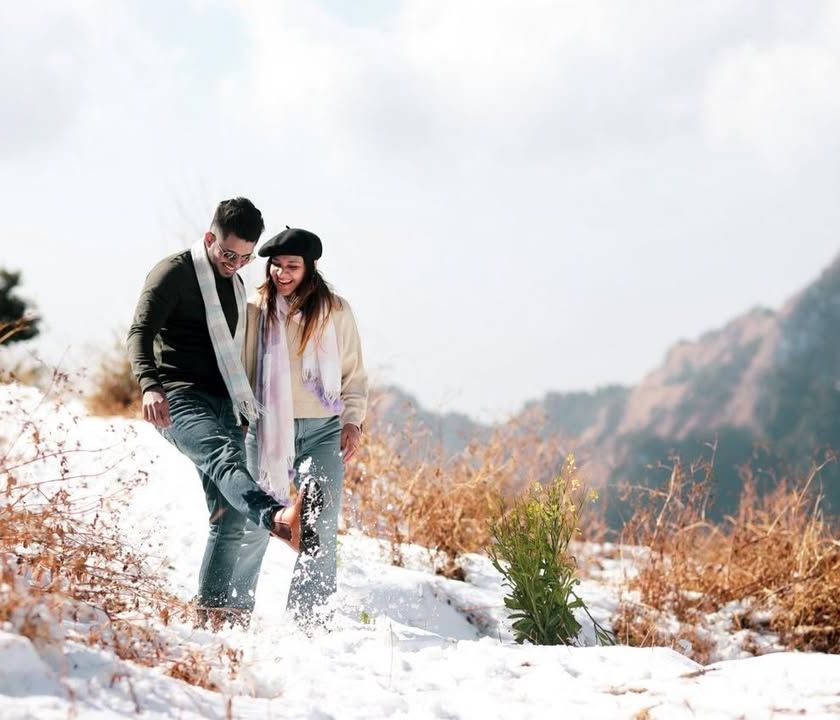 For the adventurous at heart, the mountains offer a breathtaking canvas. Whether it's the dramatic contrast of a vibrant dress against pure white snow or a quiet moment overlooking the valleys of Uttarakhand, I capture love stories that are as epic as the Himalayas themselves.