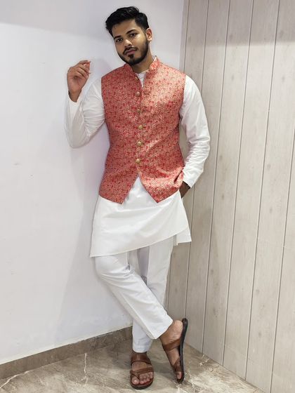 For a contemporary twist on traditional wear, I design custom Jodhpuri suits and Indo-Western outfits. This collection features everything from layered open jackets and shrugs over kurtas to statement pieces with unique embroidery, perfect for sangeets, receptions, or any stylish celebration.