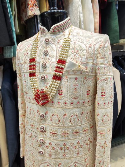 A sherwani is more than just wedding wear; it’s the groom’s defining statement. I specialize in creating made-to-measure sherwanis, from classic ivory with hand embroidery to rich velvet pieces, ensuring your outfit is as special as your wedding day. We can also coordinate your look to match the bride’s lehenga.