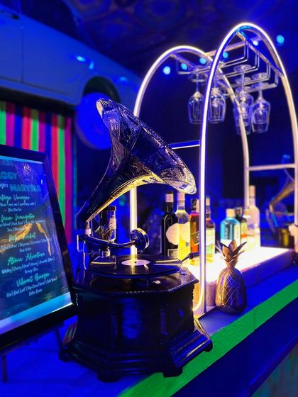 We combine the best of both worlds with this popular theme, mixing retro elements like gramophones and vintage cars with the electric energy of neon lights. This setup is perfect for a high-energy sangeet or cocktail party with lots of masti.