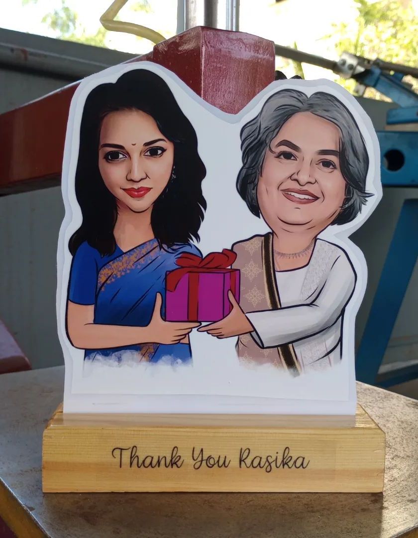 Turn your caricature into a lasting memory. I offer custom products like framed prints, wooden cut-out standees, and personalized keychain holders, perfect for anniversaries, farewells, or a special surprise.