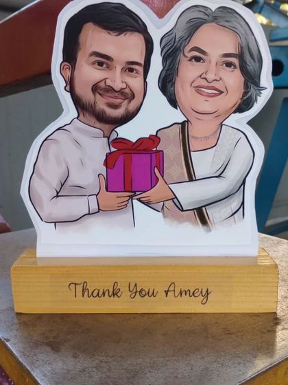 I turn your photos into custom hand-painted caricature gifts like wooden cut-outs, framed art, or watercolours, made to order and shipped across India.